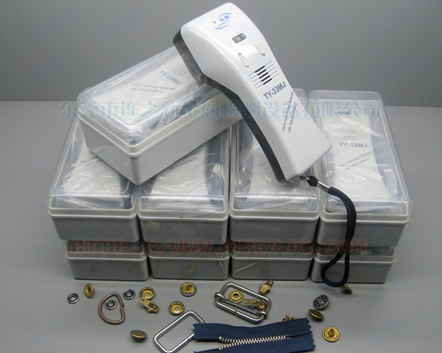 2、可用于五金鈕扣等服裝服飾配件進行鐵磁性雜質檢查,高靈敏度相當于所謂8-10級,低靈敏度相當于5-8級檢針(高靈敏度檢測0.5~0.8mm適合紡織品檢查用,低靈敏度檢測0.9-1.2mm適合要求低的金屬紐扣拉鏈及鞋材、皮革、釘子探測類檢測使用)。